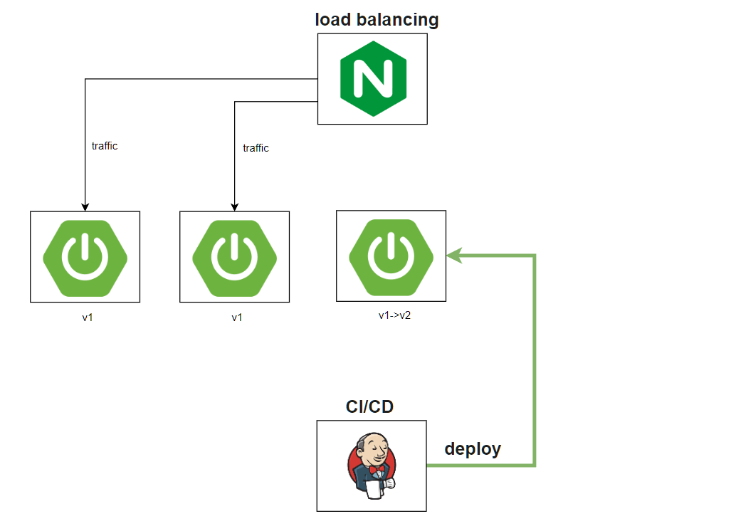 Spring을 예로 들면 전체적인 흐름은 jenkins를 통해 빌드 후, 빌드 된 jar파일을 배포를 관리하는 폴더로 복사한다. sh 스크립트를 통해 관리하기 되는데 docker compose를 통해 새로운 버전의 컨테이너를 띄우고 이전 버전을 내린다.. 말로는 참 쉽다. ;-;
